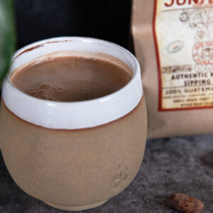 Während seiner Reisen durch Guatemala stieß Zuvuya°Captain u.r.s. jOsé auf einen außergewöhnlichen Schatz: einen Kakao, der auf traditionelle, liebevolle Weise von einer kleinen Gemeinschaft gefertigt wird. Hier ist alles Handarbeit – von der steingemahlenen Bohne bis zur letzten Note Magie. Jede Charge wird mit der Tagesenergie des Tzol’kin aufgeladen, was diesem Kakao seine unvergleichliche spirituelle Kraft verleiht.