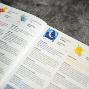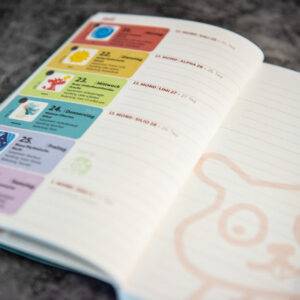 Gedruckt auf hochwertigem Papier (recycling, 110g/m2) mit viel Herzblut kreiert. Die Agenda ist nachhaltig produziert, robust, schön gebunden (Fadenbindung) und passt in jede fast jede Tasche. Und weil wir gerne teilen, gibt’s die PDF-Version kostenlos dazu, zum Verschenken, Tauschen oder Weitergeben.